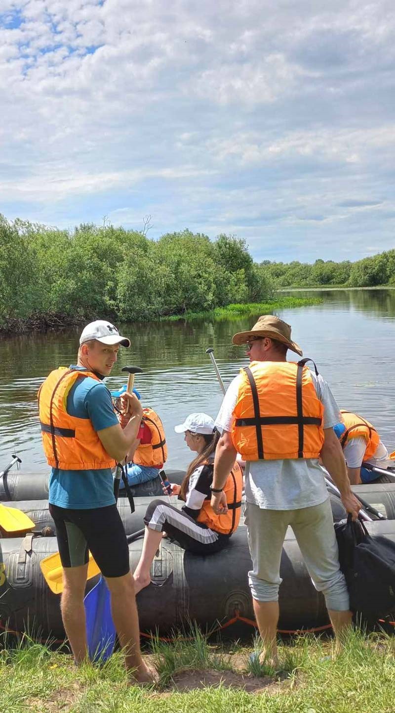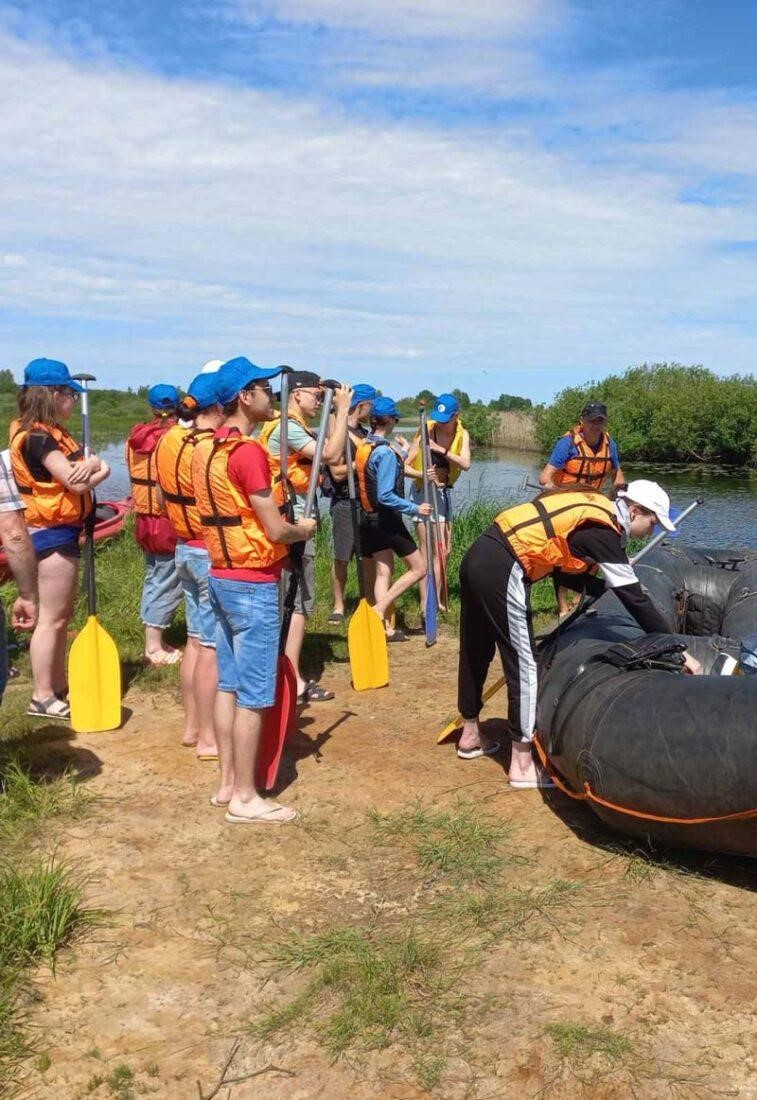 У Березины их уже ждали плавсредства, и начался 3-часовой сплав по Березине к деревне Студенка в сопровождении инструкторов — специалистов центра творчества детей и молодежи и под рассказ экскурсовода, педагога дополнительного образования ЦТДиМ Сергея Мороза.
