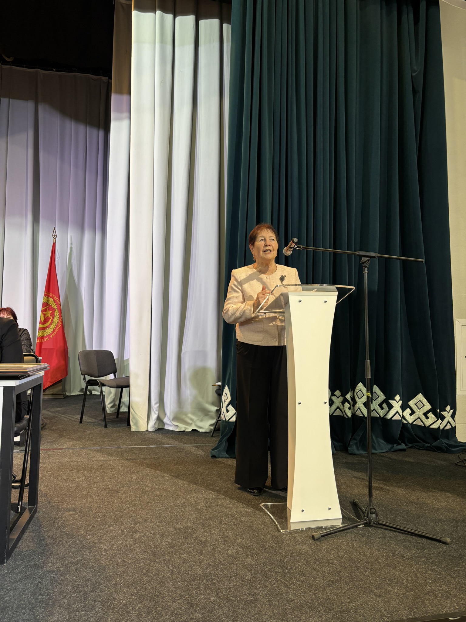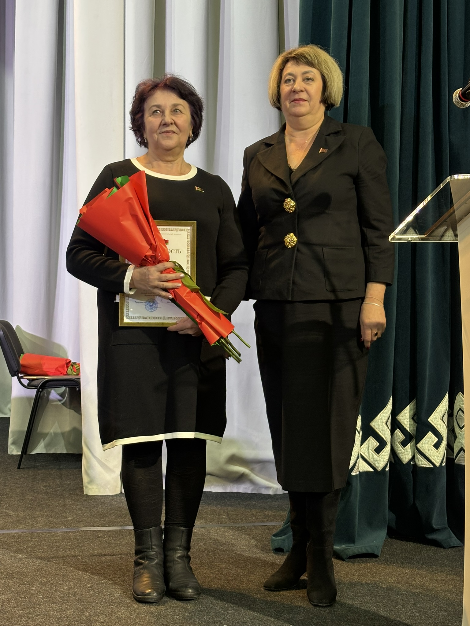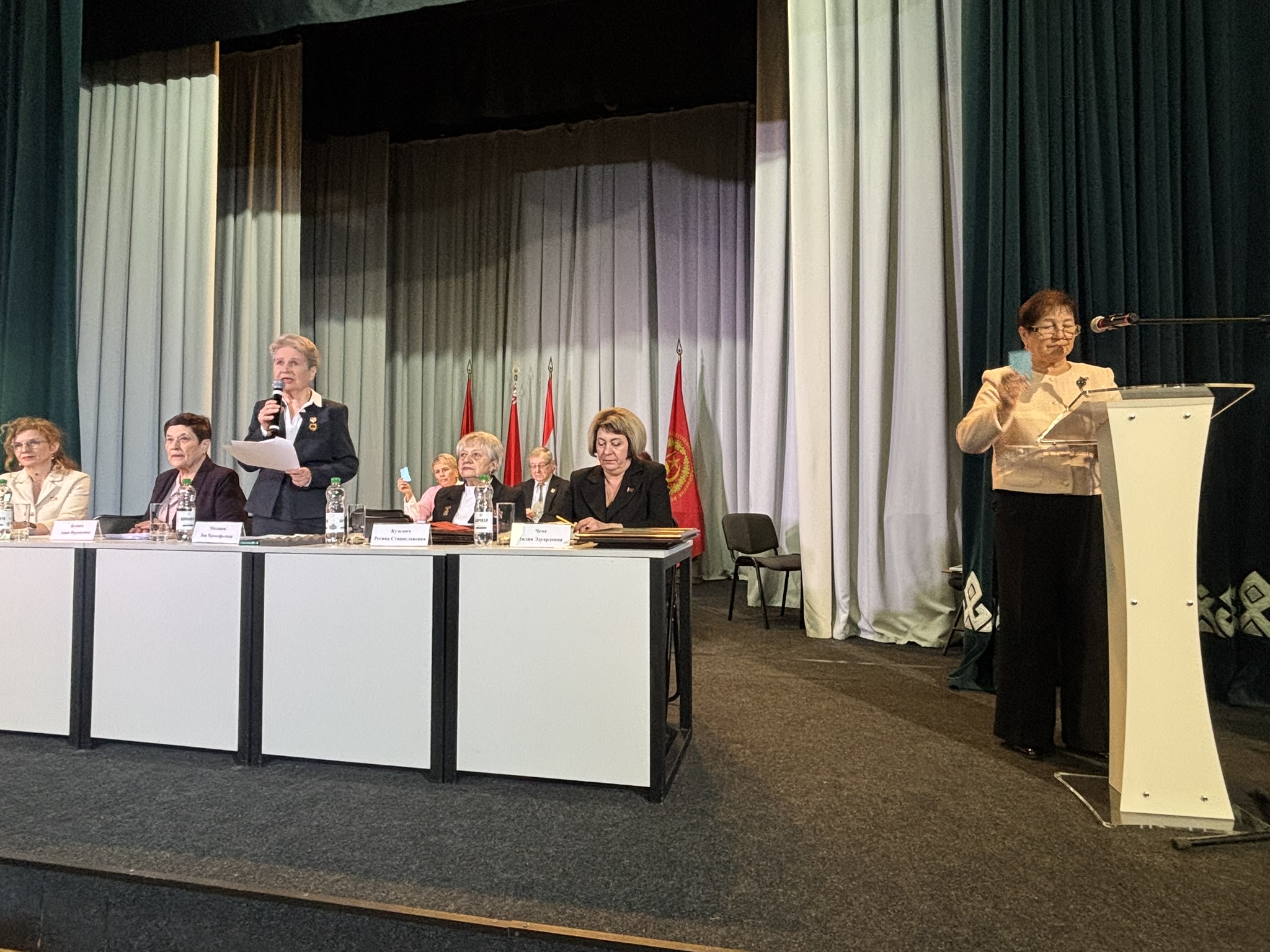 Заместитель председателя совета Минской областной организации ветеранов Регина Кузьмич поблагодарила Борисовскую районную организацию ветеранов и всех ее членов за достойный труд и активную деятельность, а также вручила заместителю председателя Борисовского районного совета ветеранов Анне Буевич нагрудный знак Белорусского общественного объединения ветеранов «За заслуги». Знака «Почетный ветеран» Белорусского общественного объединения ветеранов удостоены Тамара Холина и Николай Мешков.