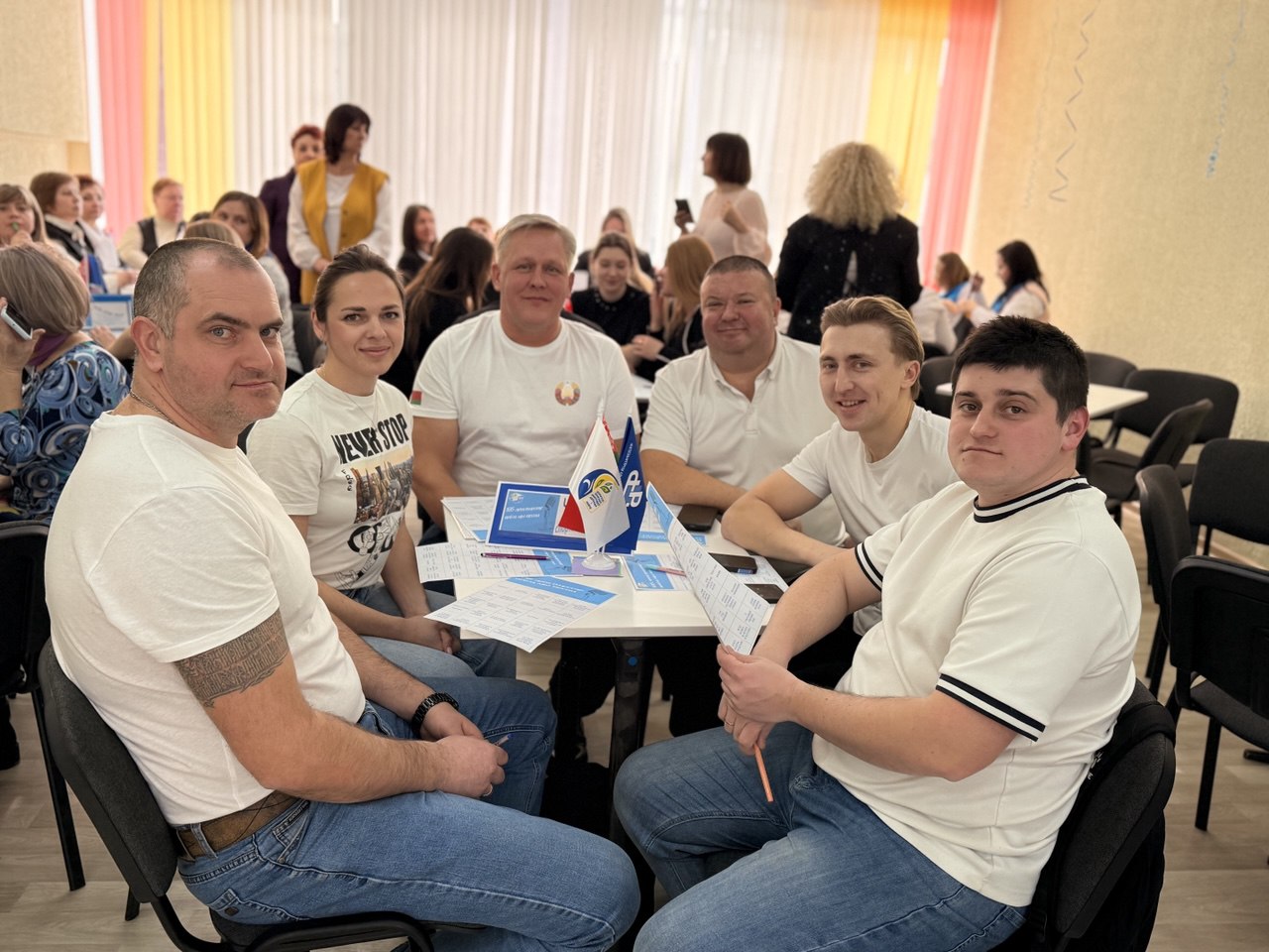 В жюри квиза почетные места заняли председатель Минской областной организации Белорусского профессионального союза работников образования и науки Татьяна Валентиновна Апранич, заведующий отделом организационной и общественной работы Минского обкома Ольга Борисовна Жданко и начальник управления по образованию Борисовского райисполкома Ирина Михайловна Садовская.