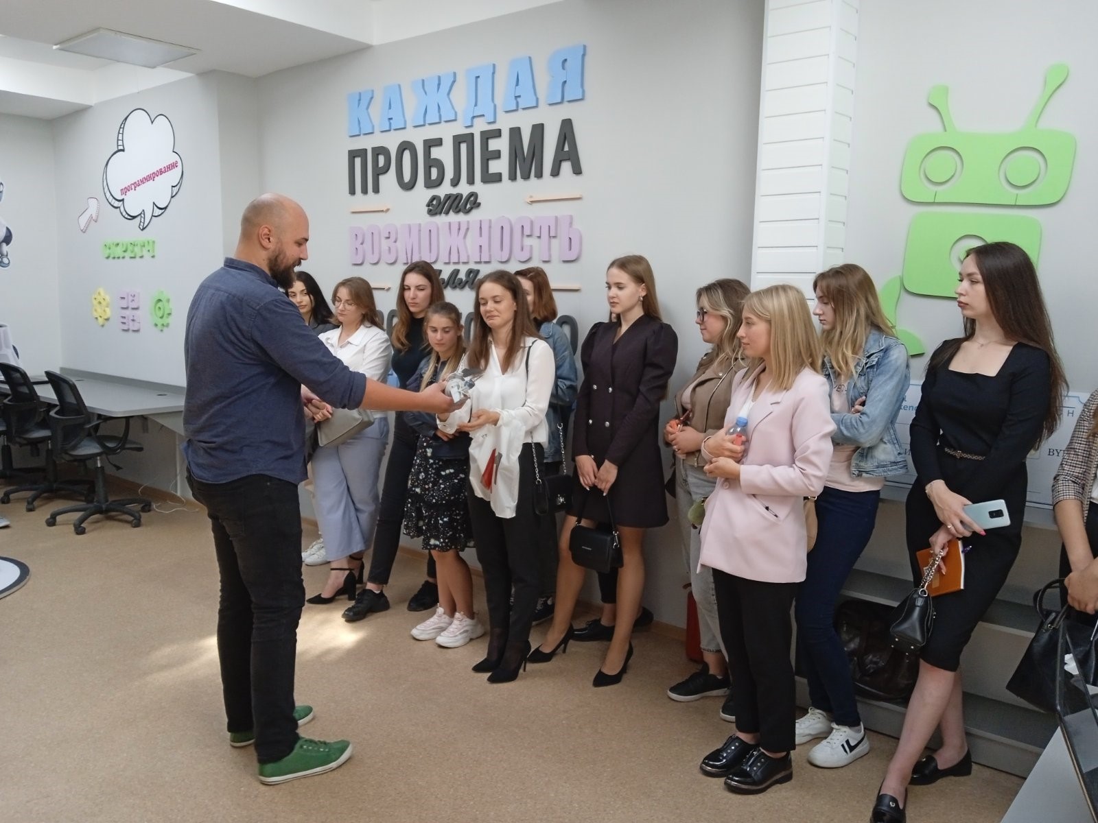 Экскурсия по школе стала отправной точкой мероприятия: разбившись на группы, молодые специалисты прошлись по просторным коридорам, заглянули в кабинеты с современным оснащением.
