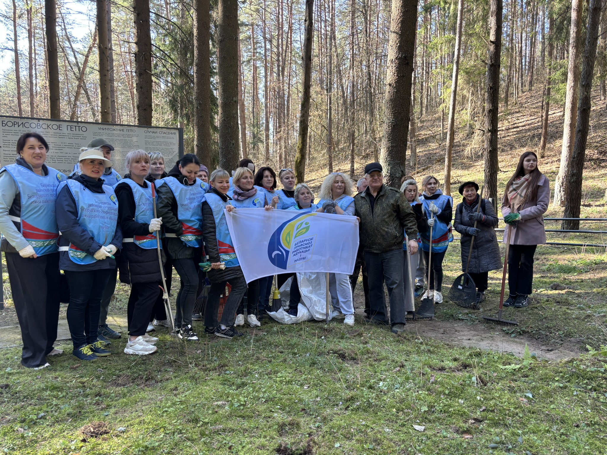 2 апреля 2026 года активисты профсоюза образования навели порядок на месте Борисовского гетто, где были захоронены заживо или убиты более 9000 человек.